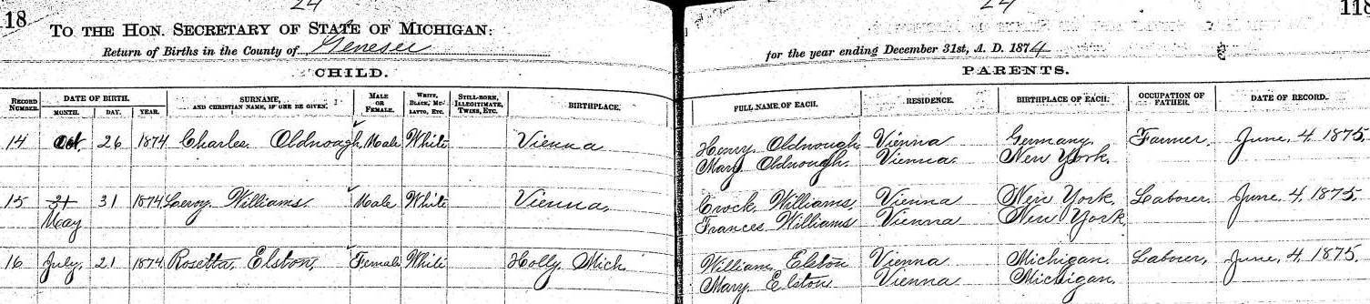 - b. 21 July 1874, Holly, Mich.