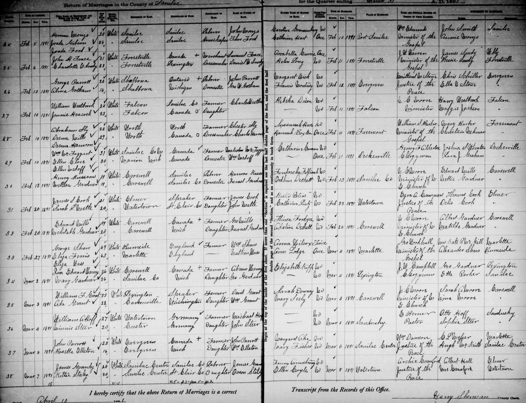 - Official State of Michigan Record of Marriage 6 March 1891