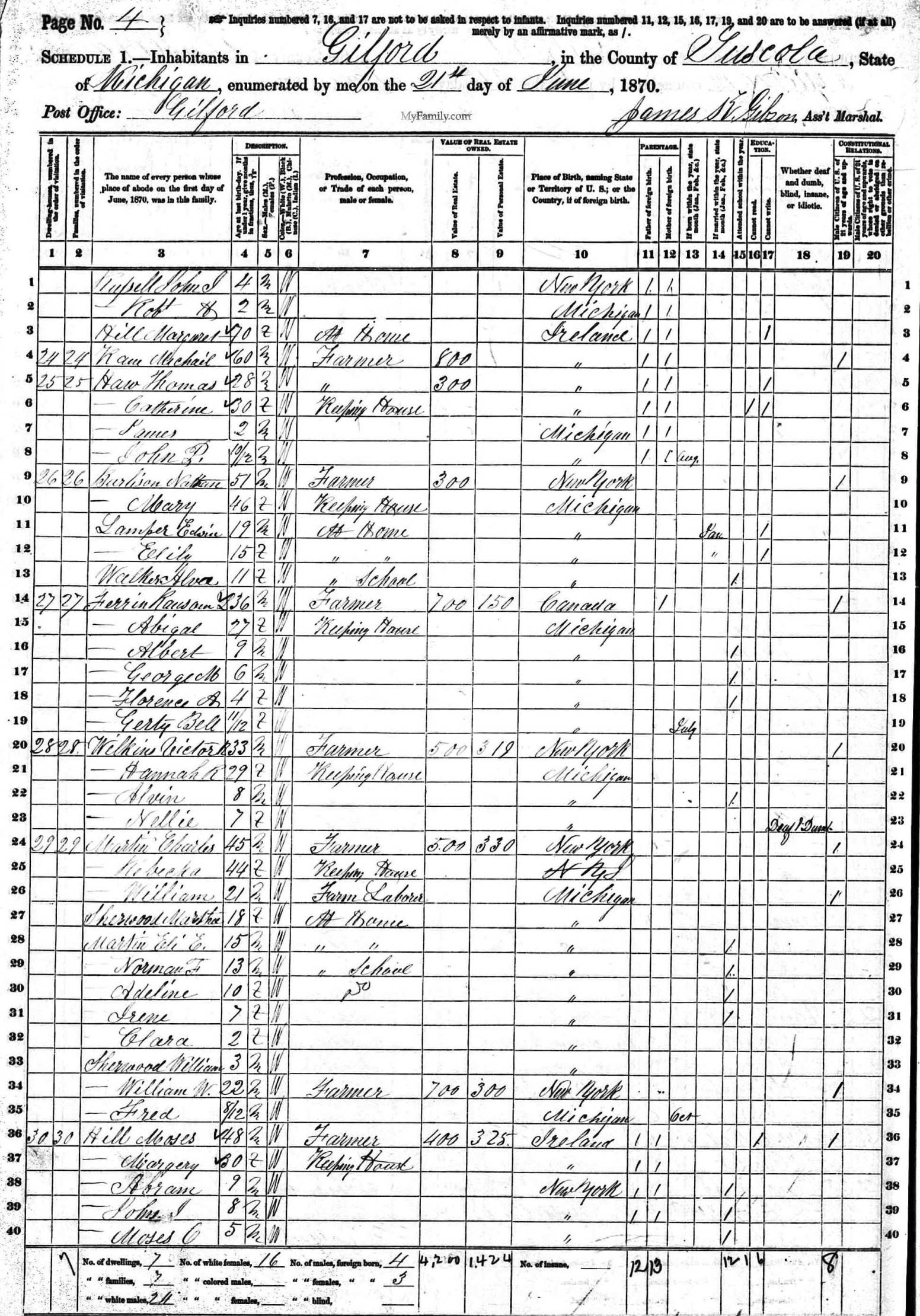 - The U.S. Census 1870 for Tuscola County, Michigan