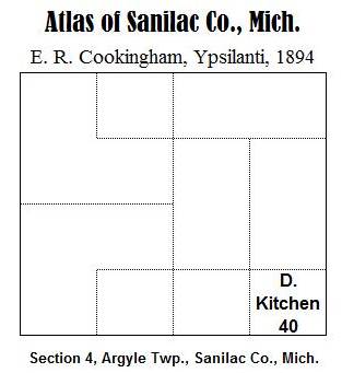 - The Atlas of Sanilac Co., Mich., E.R. Cookingham, Ypsilanti, 1894 shows D. Kitchen