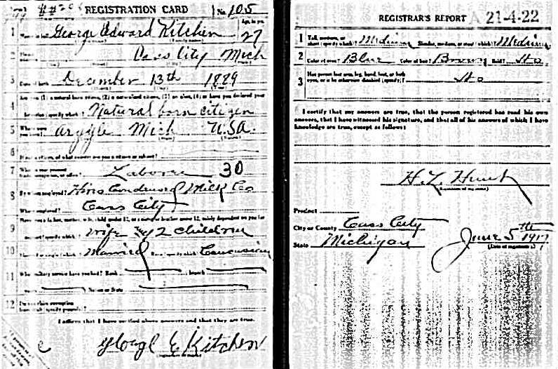 George E. Kitchen. Note date of birth erroneous stated as Dec. 13, "1887."