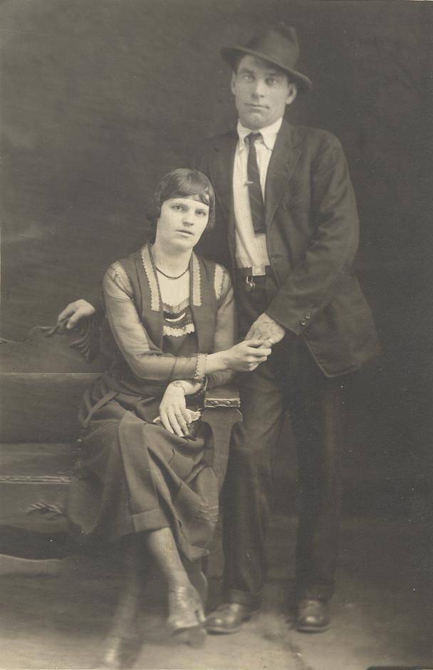 in a photo saved by their son, Ben G. Kitchen. Dress and hair suggest 1920s or 1930s. She is wearing a wedding band.