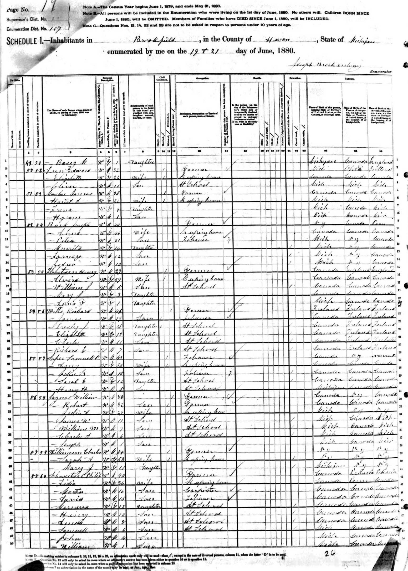- The U.S. Census 1880 for Brookfield Township (one mile north of Gagetown), Huron County, Michigan, shows